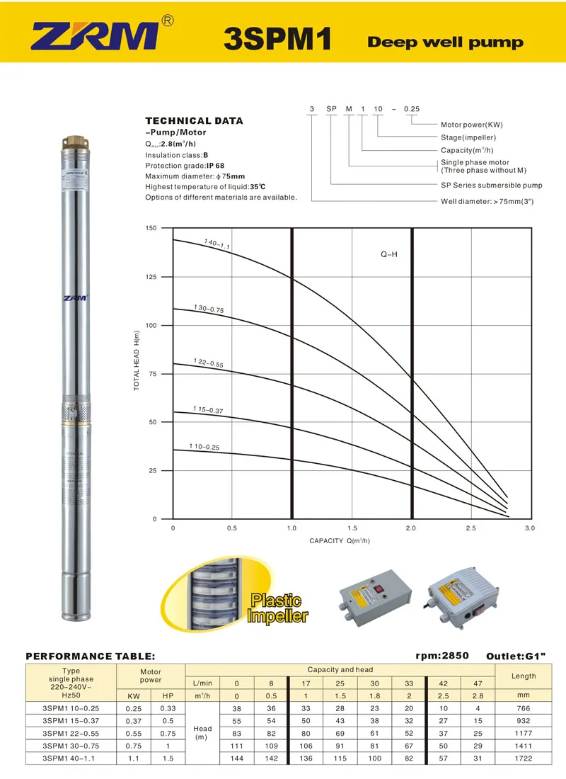 0.55 kw borehole pump