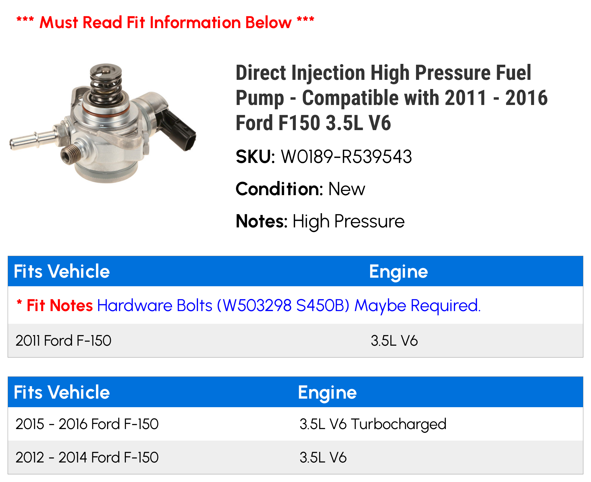 2012 f150 high pressure fuel pump
