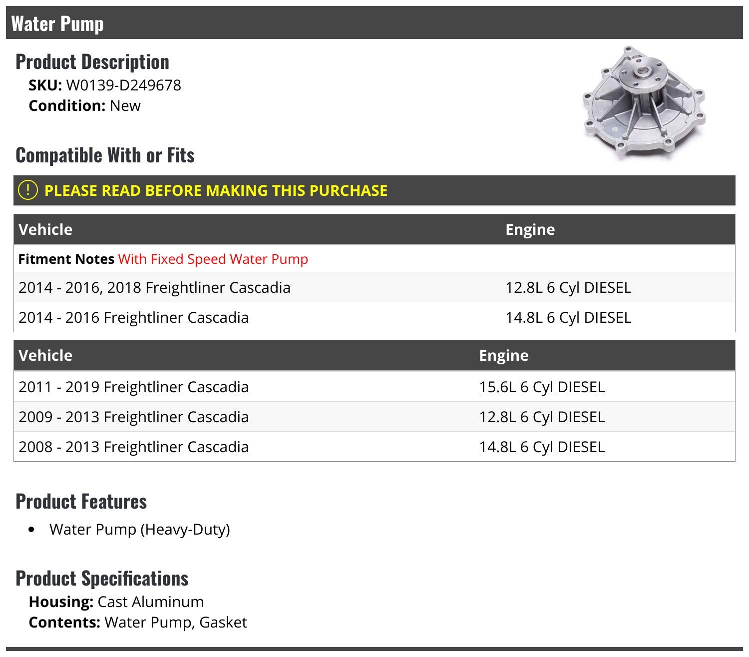 2016 freightliner cascadia water pump