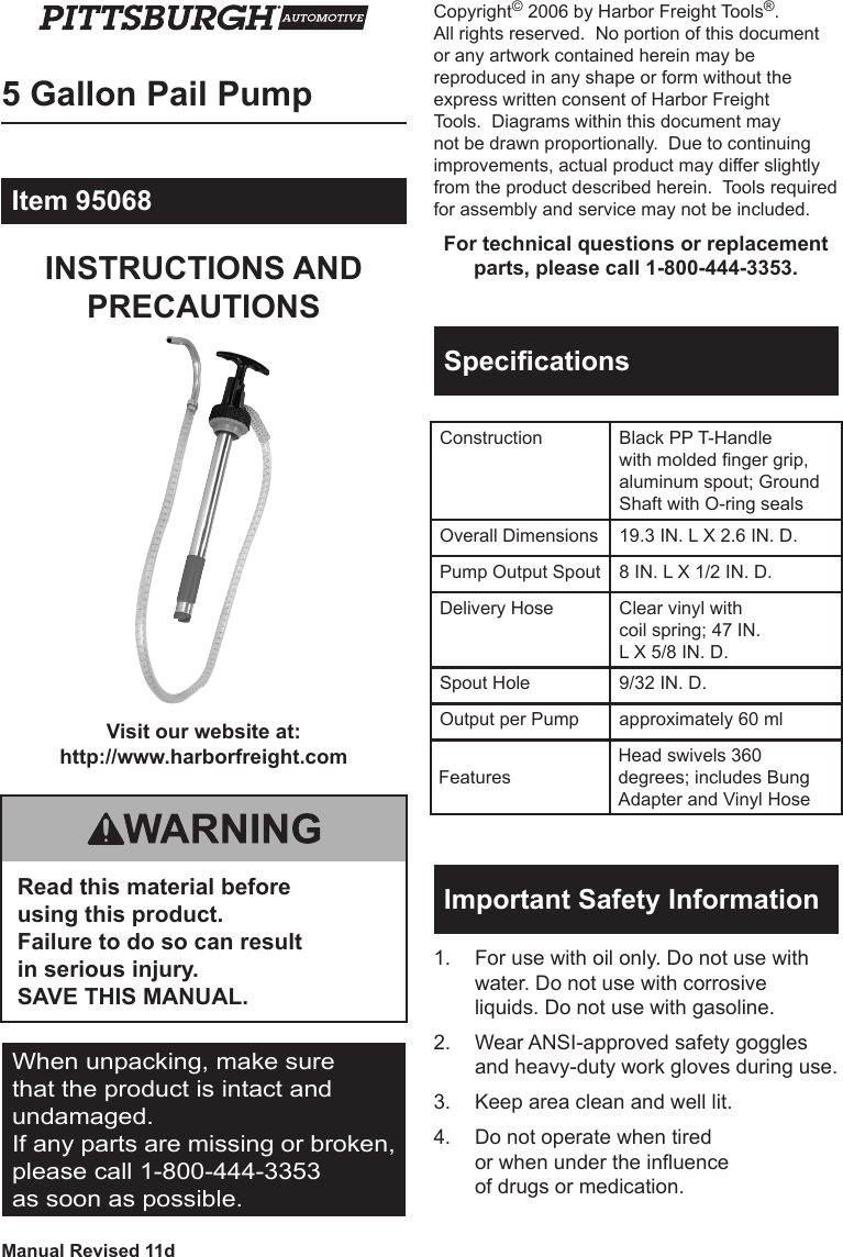 5 gallon pail pump harbor freight