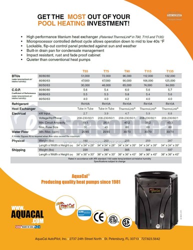 aquacal tropical heat pump