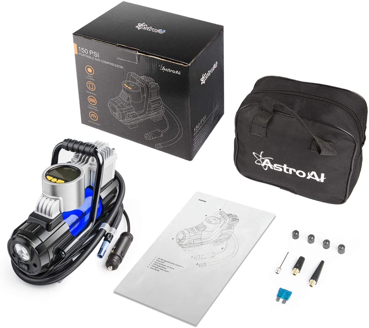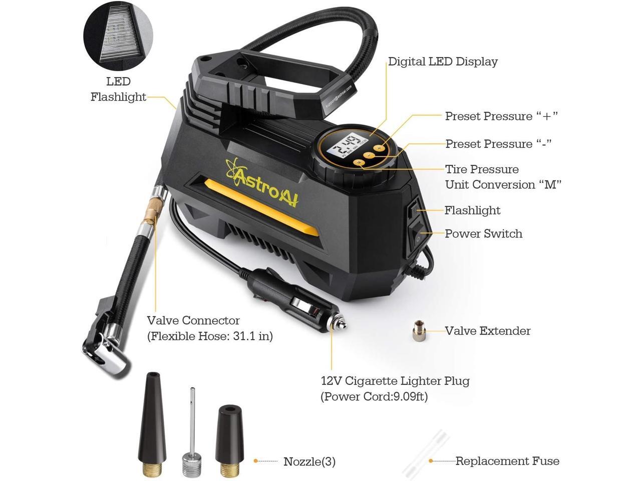 astroai air compressor pump 12v electric portable digital tire inflator