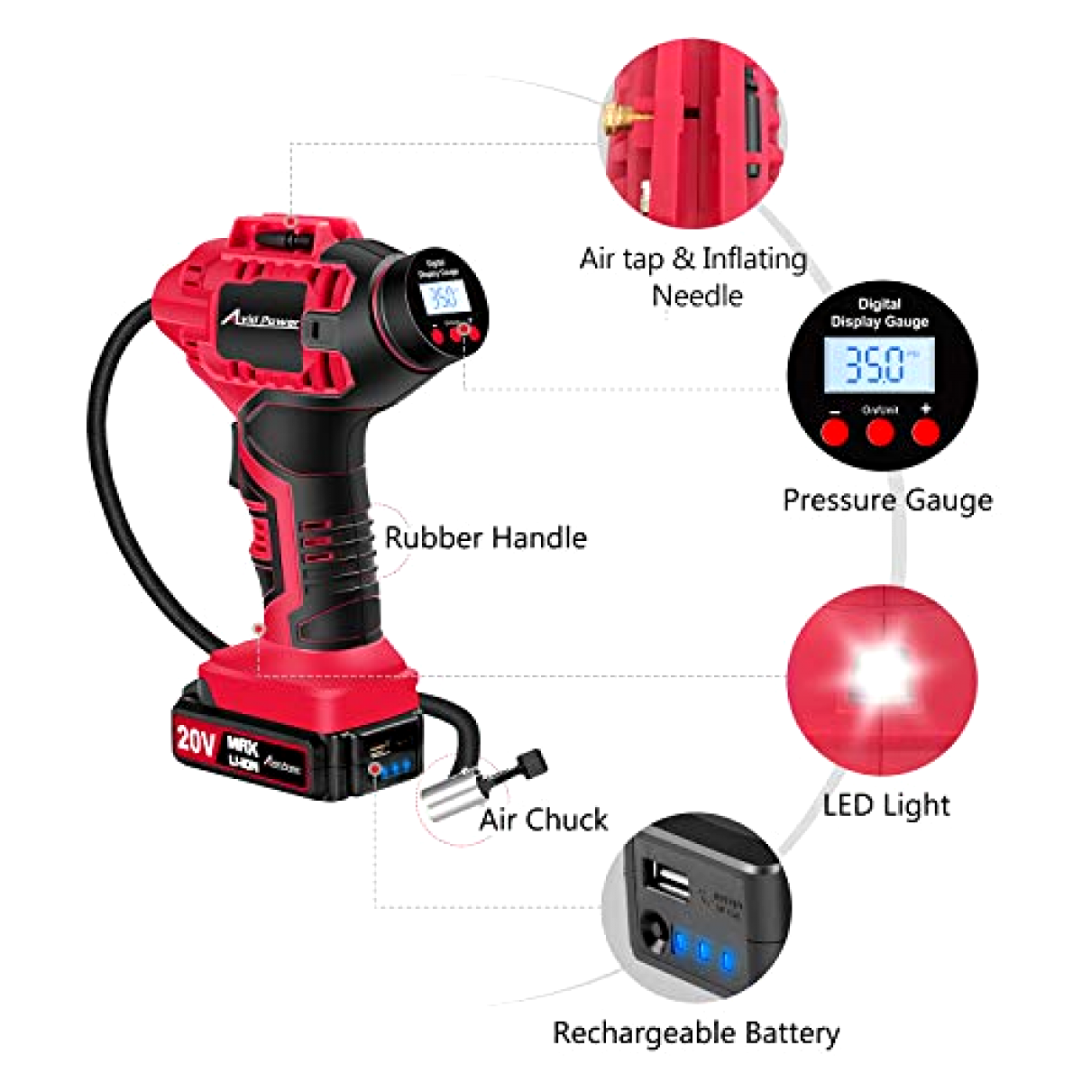 avid power 20v automatic cordless inflator