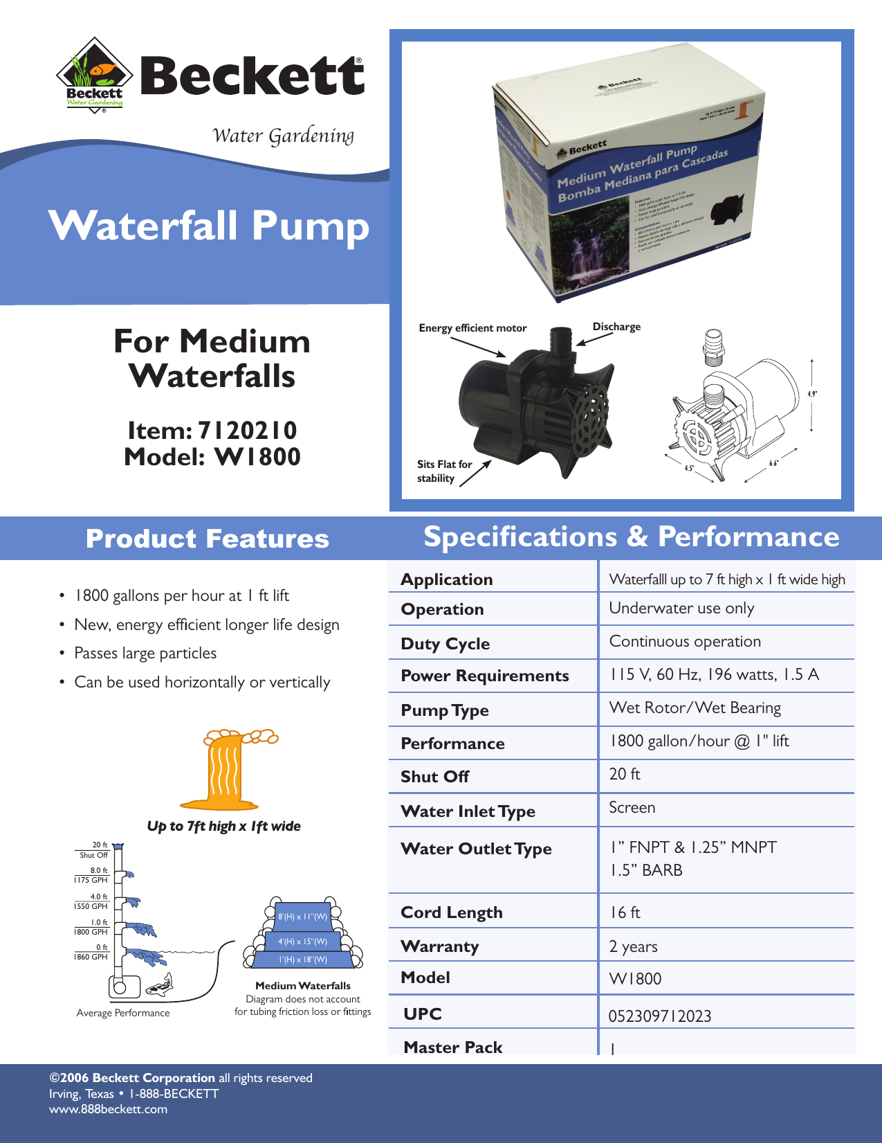 beckett w1800 waterfall pump