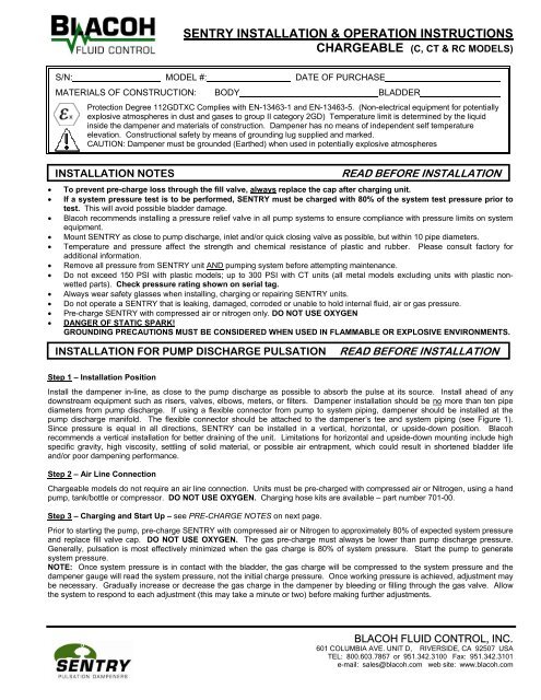blacoh pulsation dampener manual