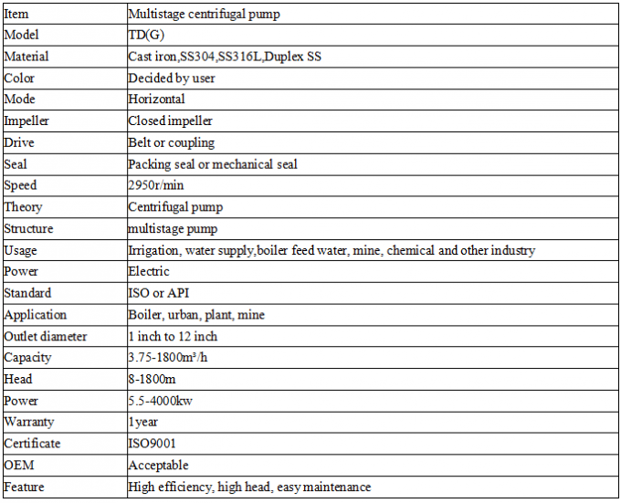 boiler feed water pump specifications