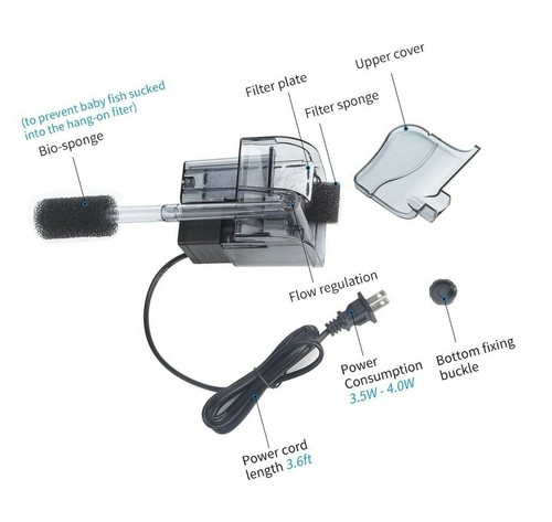 boxtech aquarium hang on filter power waterfall suspension oxygen pump