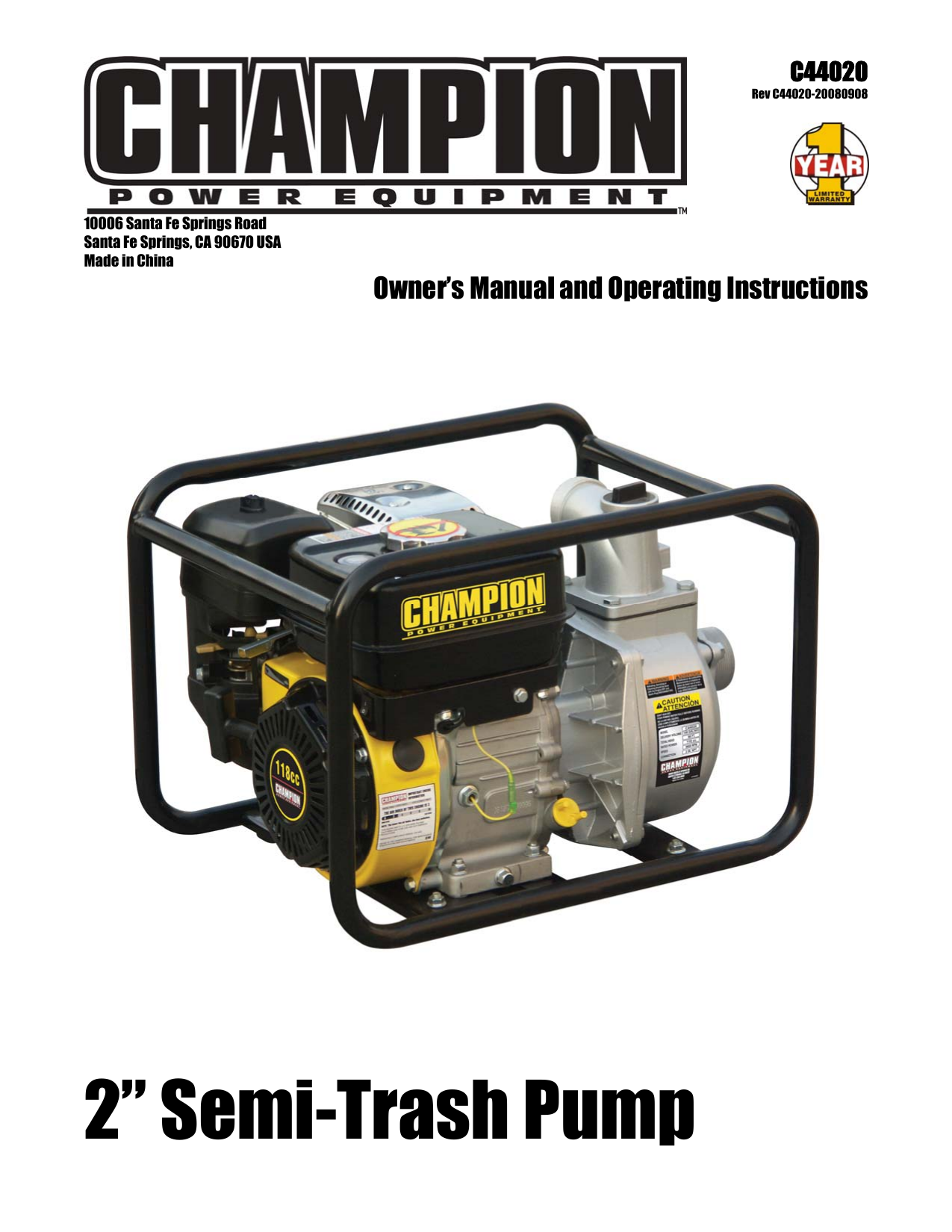 champion 118cc water pump