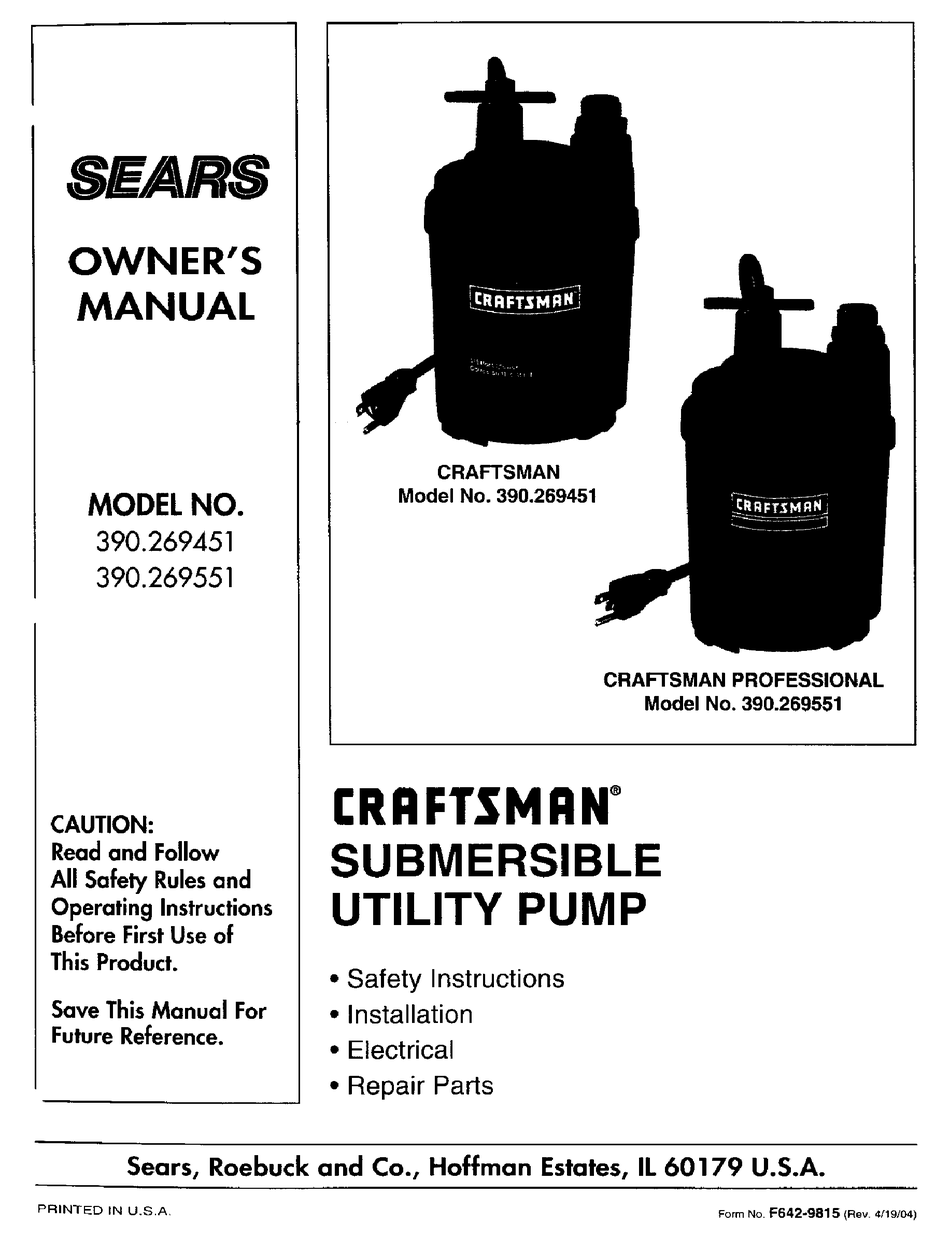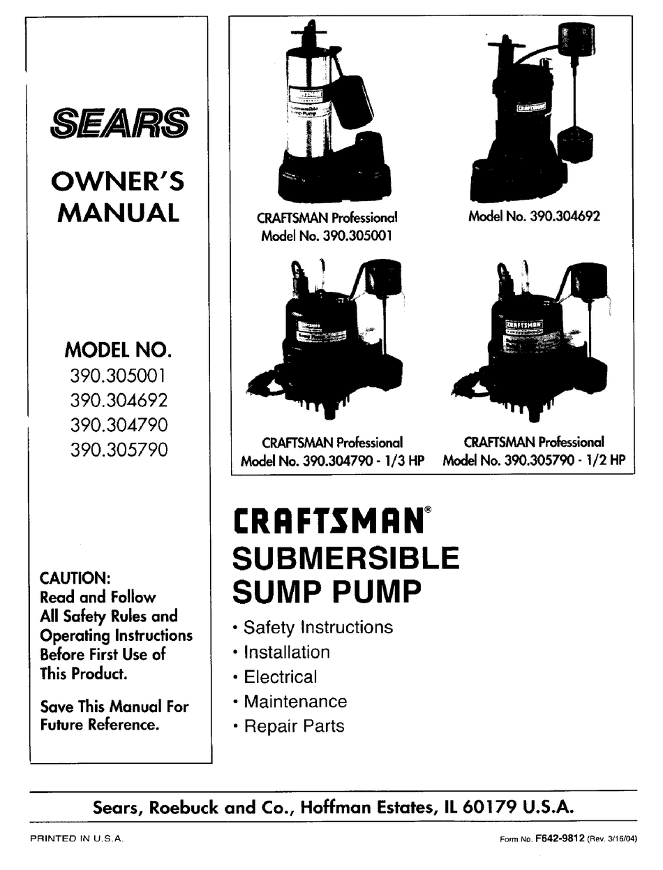 craftsman submersible sump pump