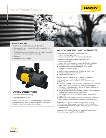 davey aquamate automatic pressure pump