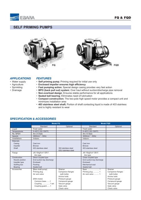 ebara self priming pump