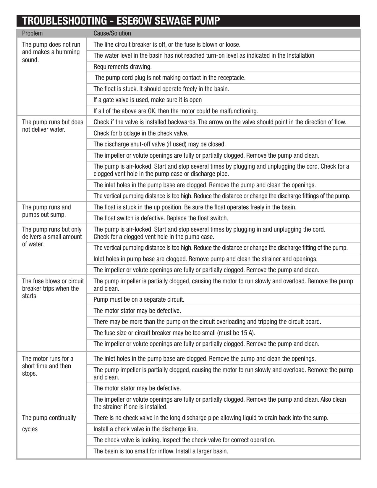 everbilt pump troubleshooting