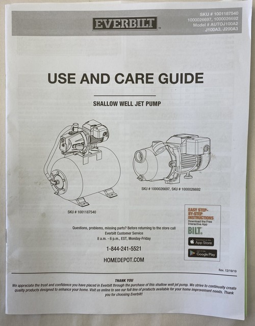 everbilt shallow well jet pump j100a3 manual