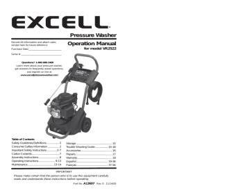 excell 2522 pressure washer