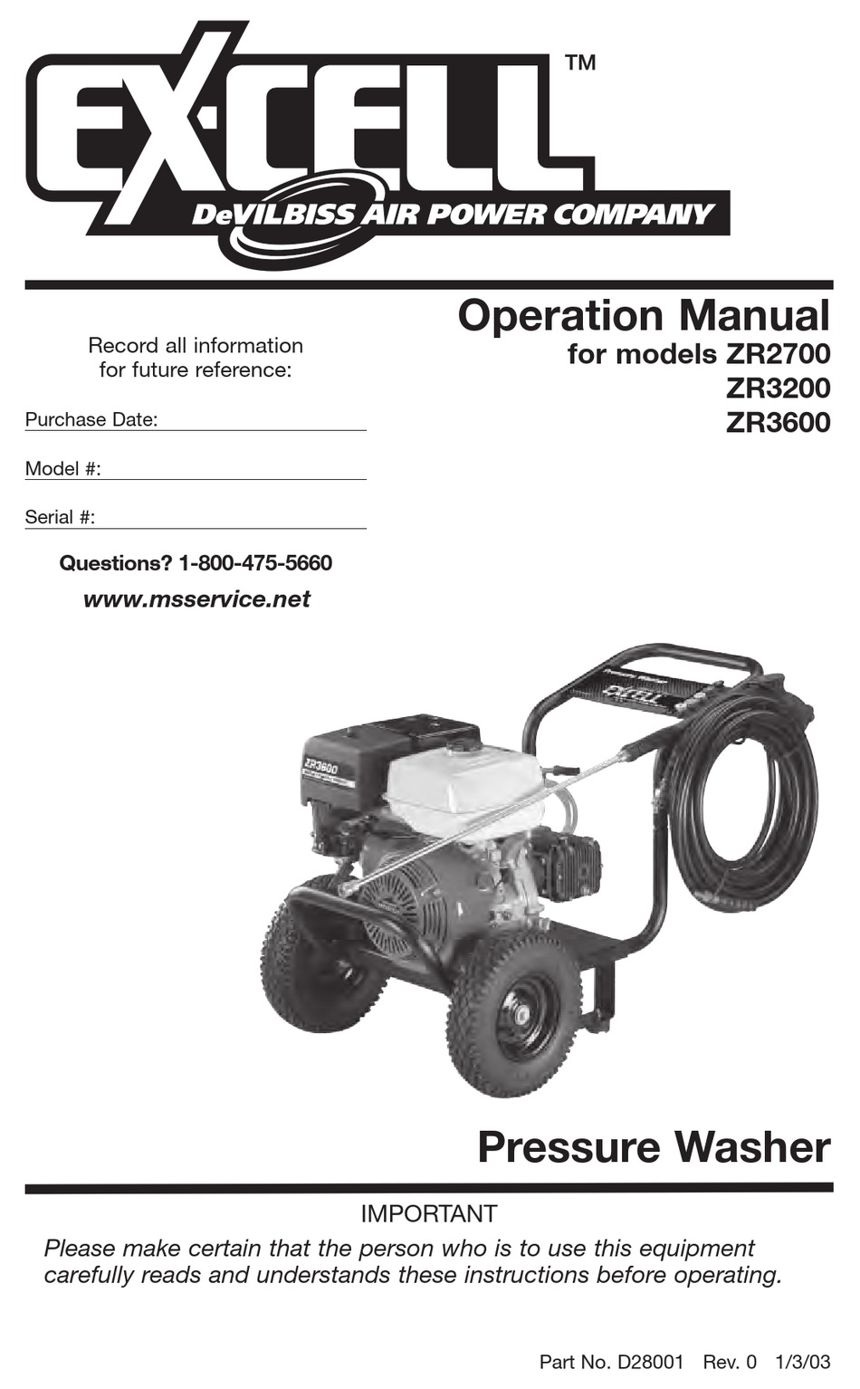 excell zr2700 pressure washer