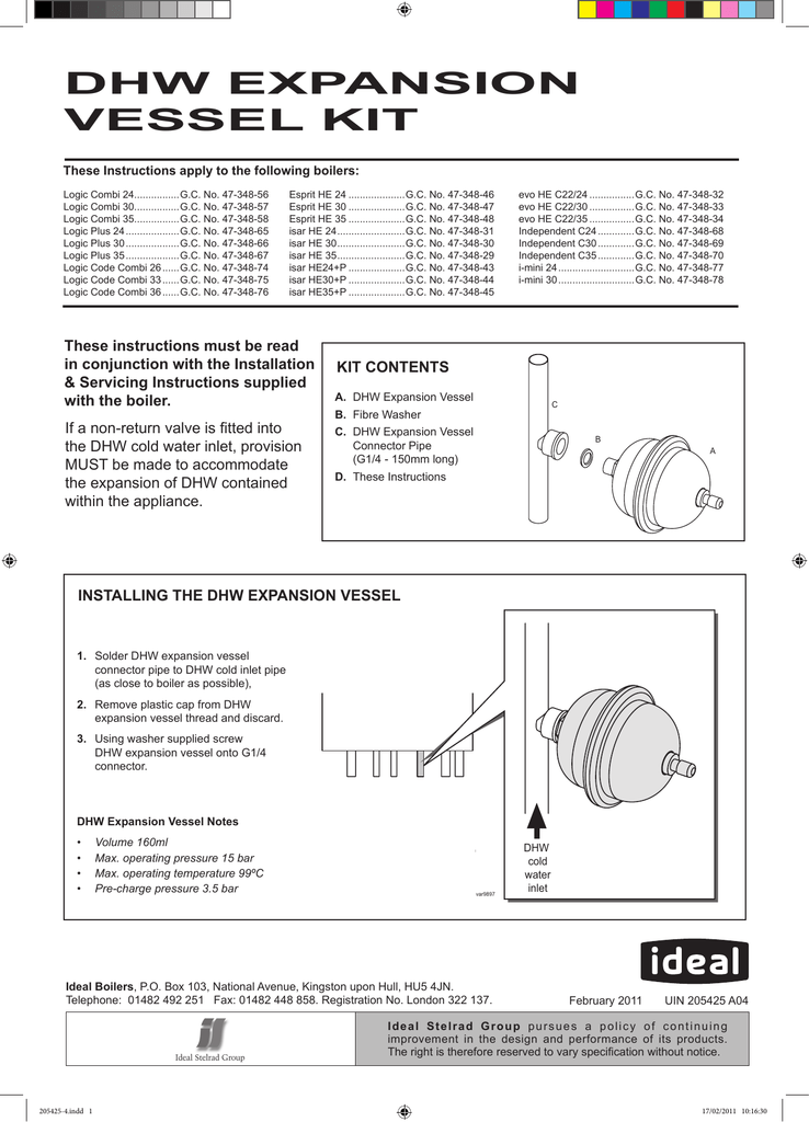 expansion vessel on cold water inlet