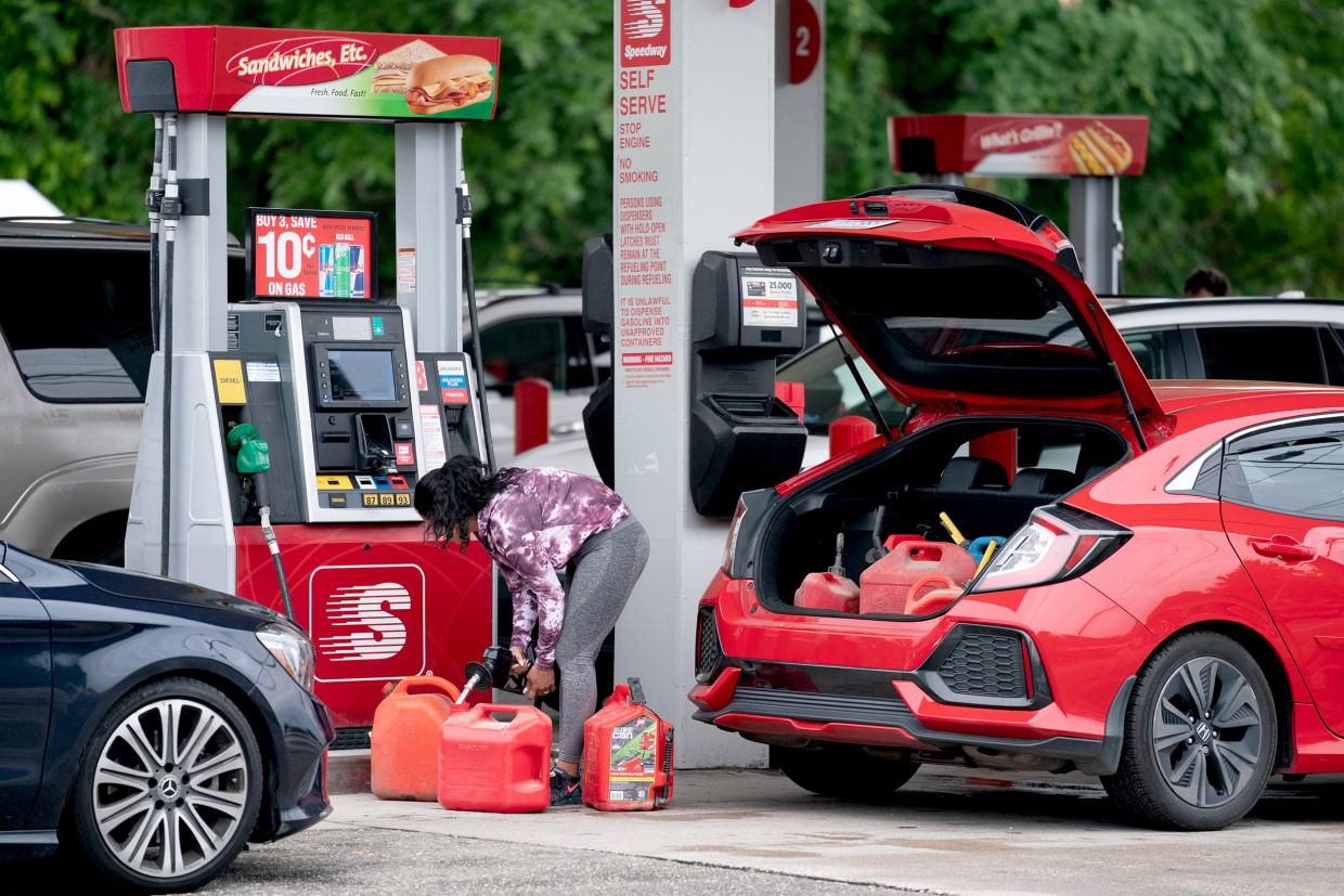 filling jerry can at gas station
