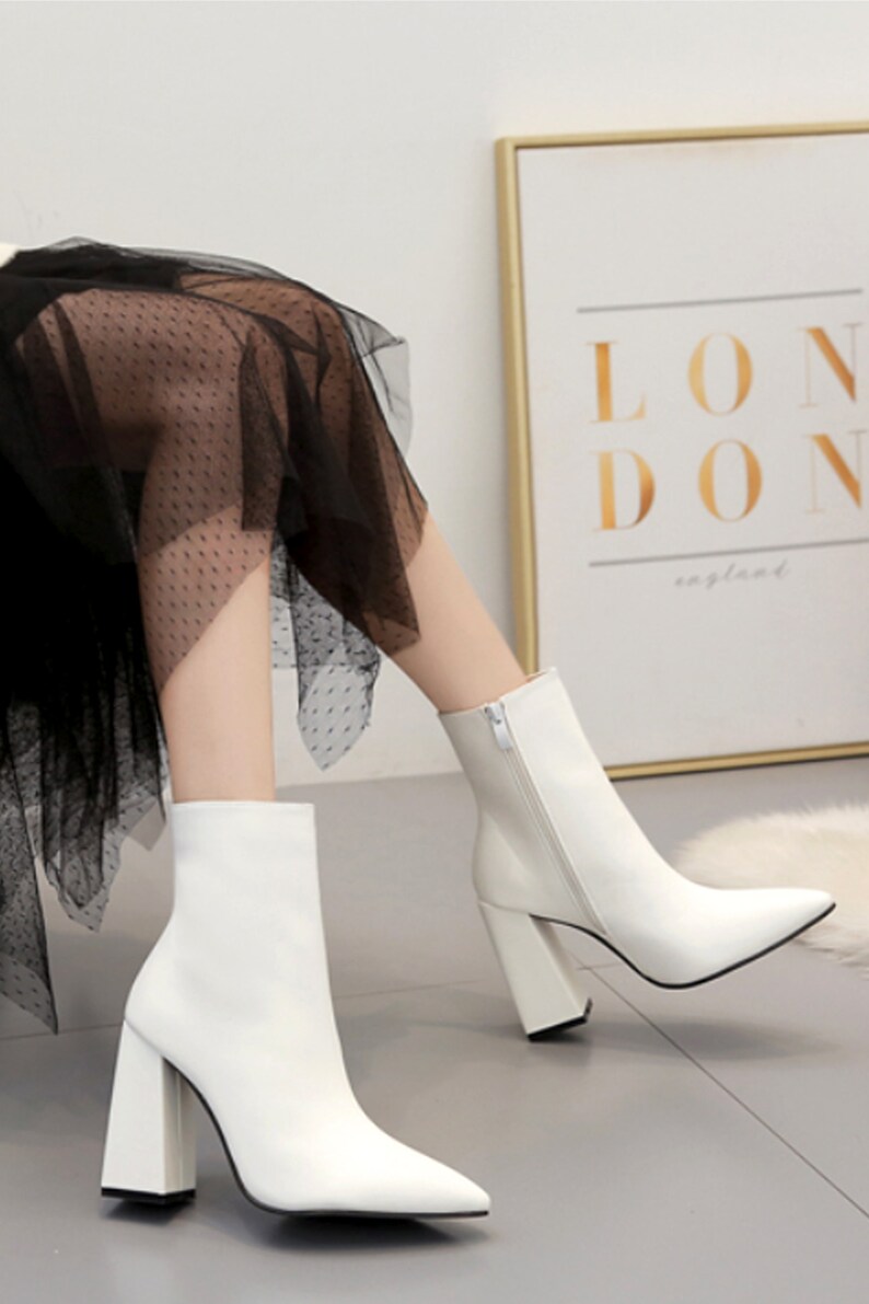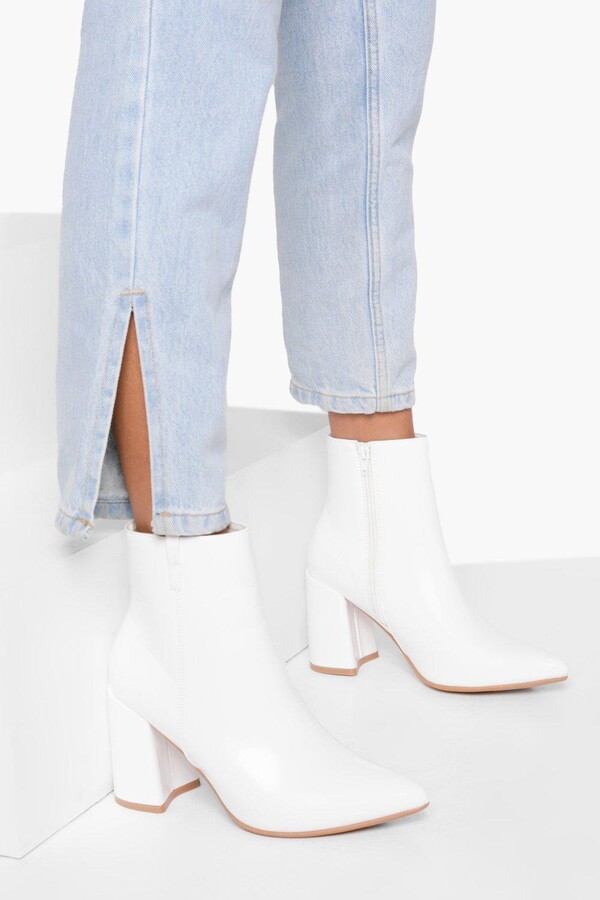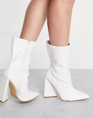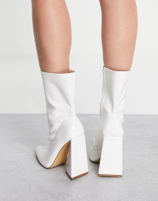 flared heel sock boots white