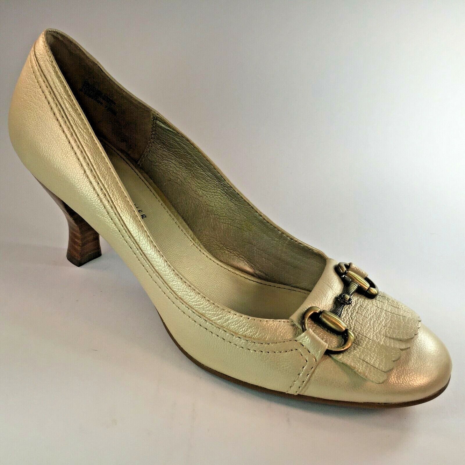 gold kitten heel pump