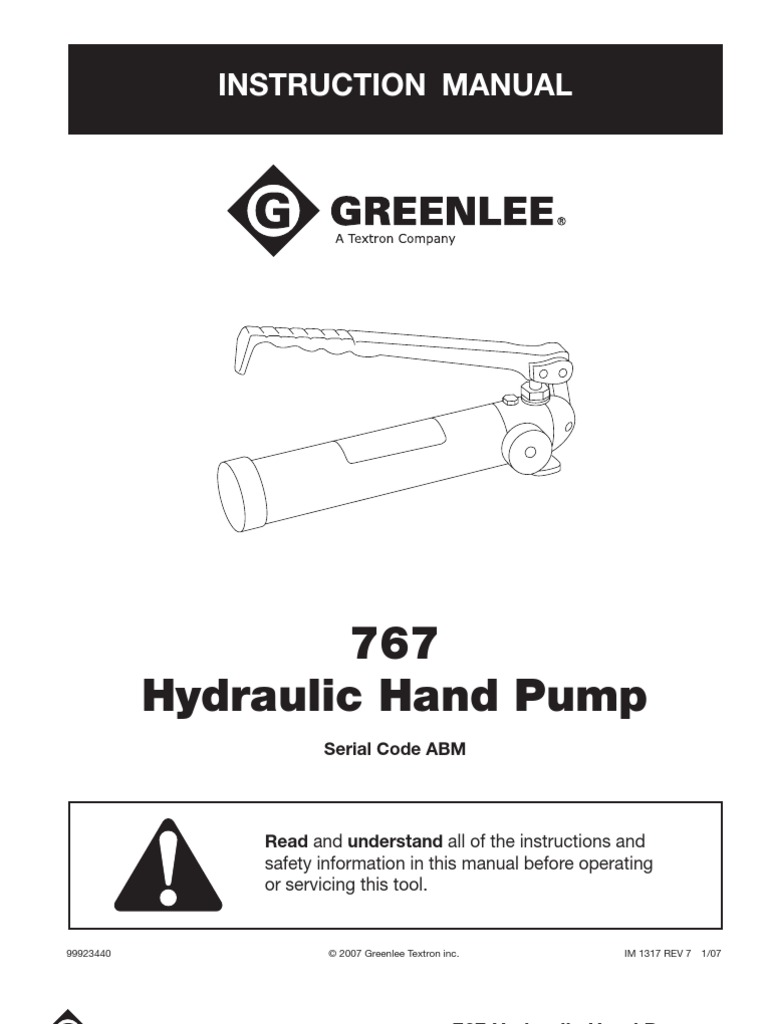 greenlee 767 hydraulic hand pump manual