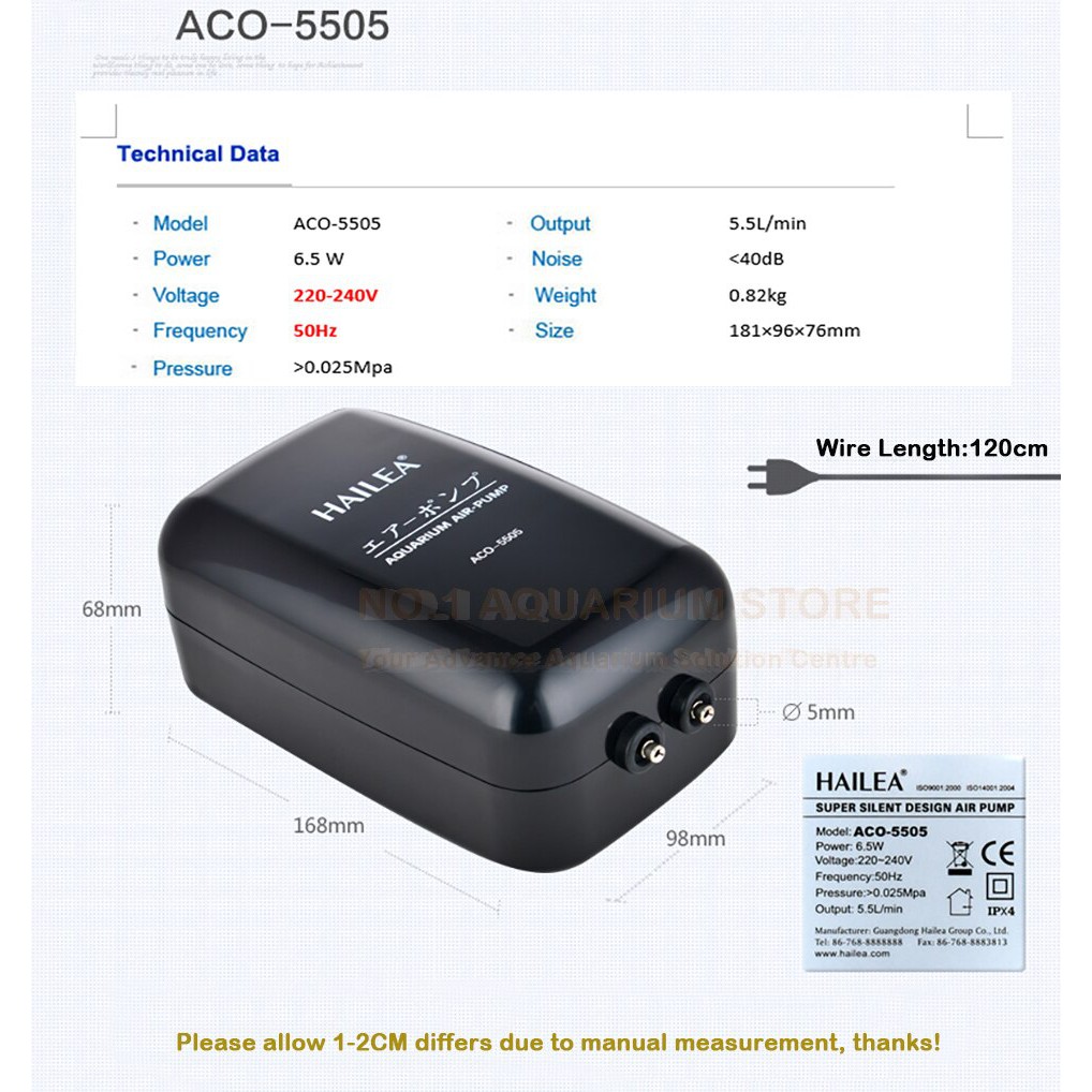 hailea aquarium air pump aco 5505