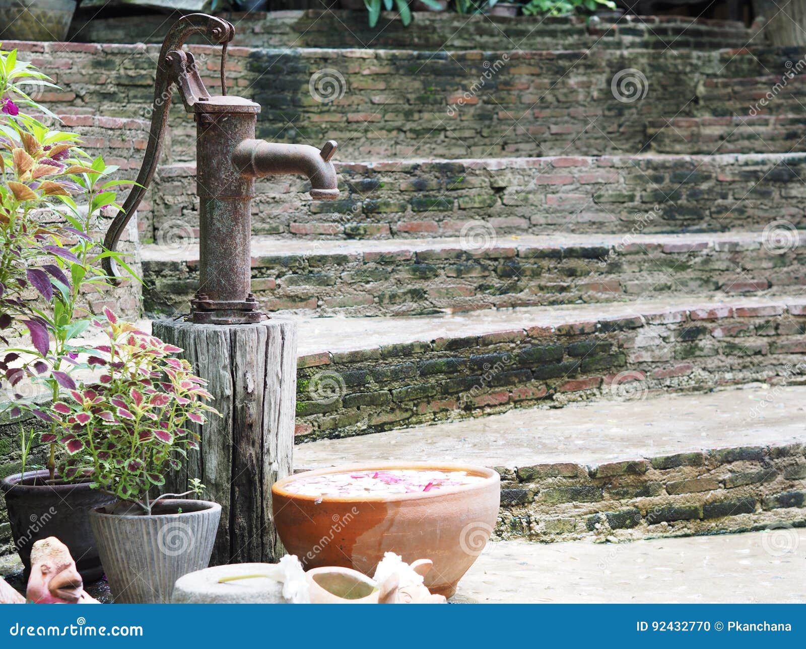 hand water pump garden feature