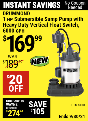 harbor freight sump pump prices