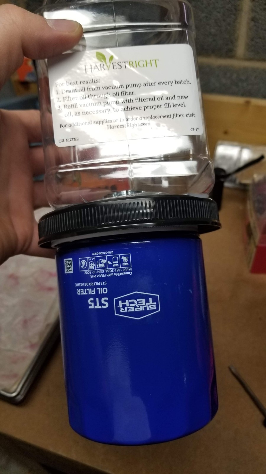 harvest right vacuum pump oil filter