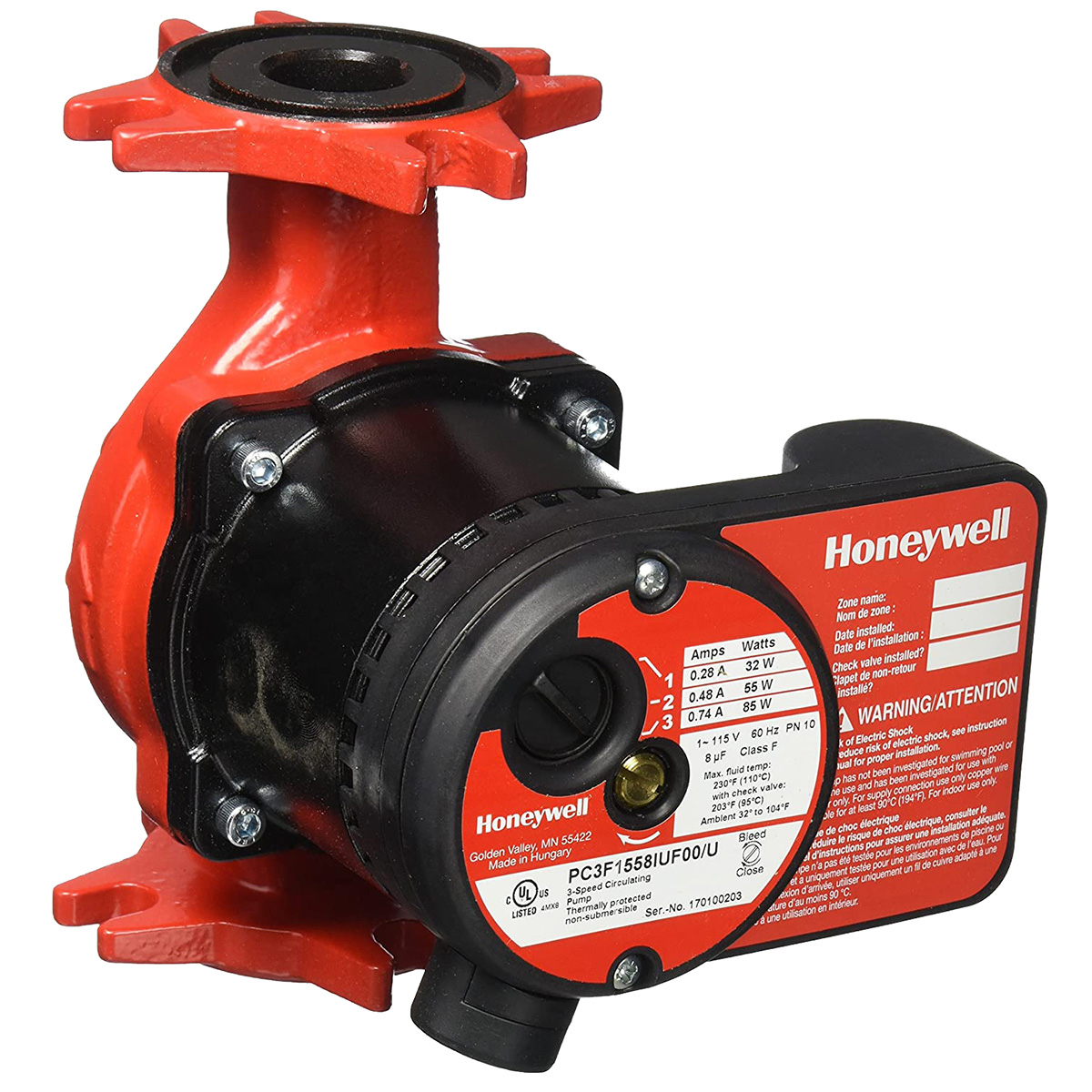 honeywell 3 speed circulating pump