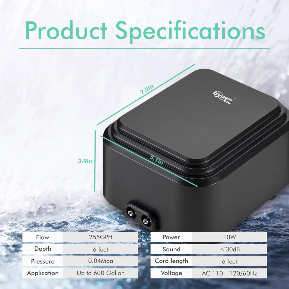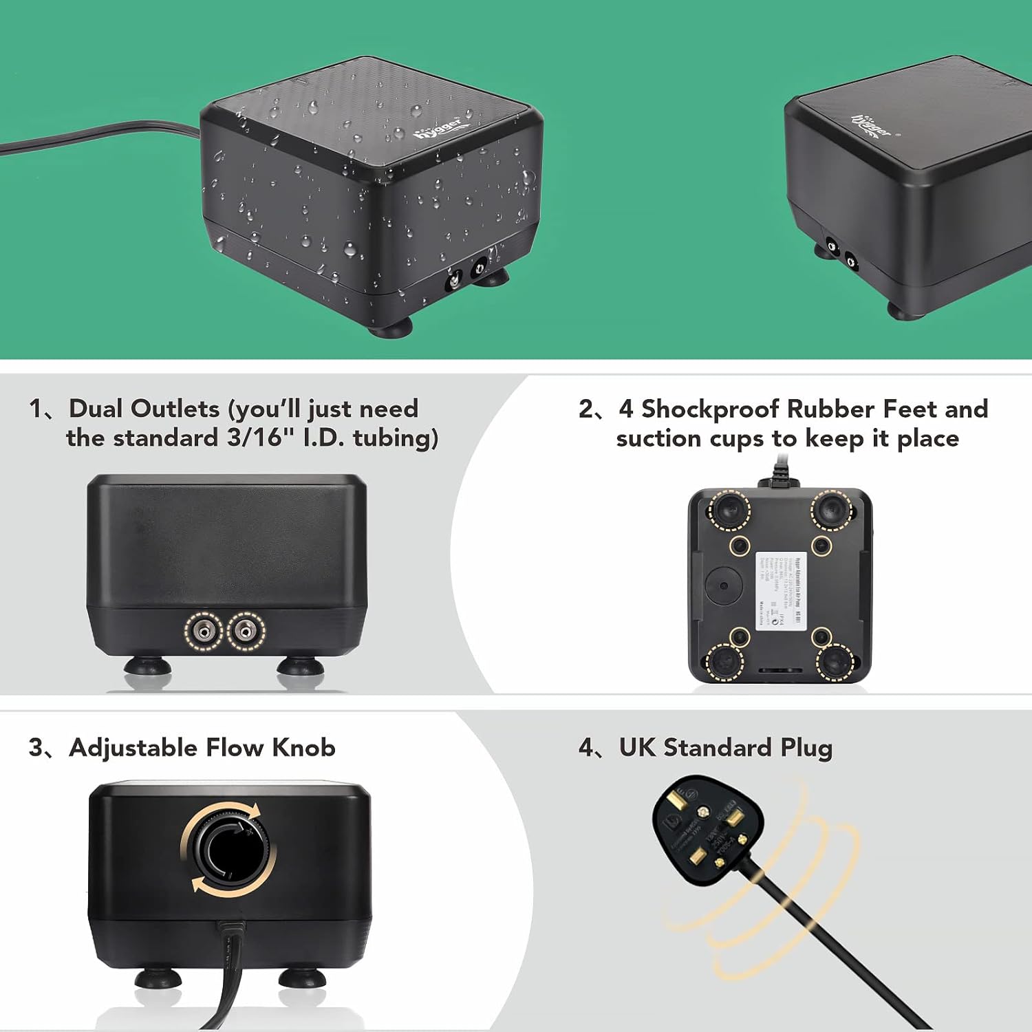 hygger quiet high output 10w aquarium air pump