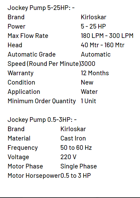 jockey pump 180 lpm