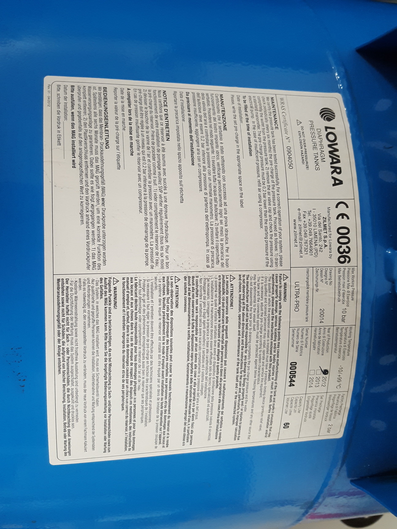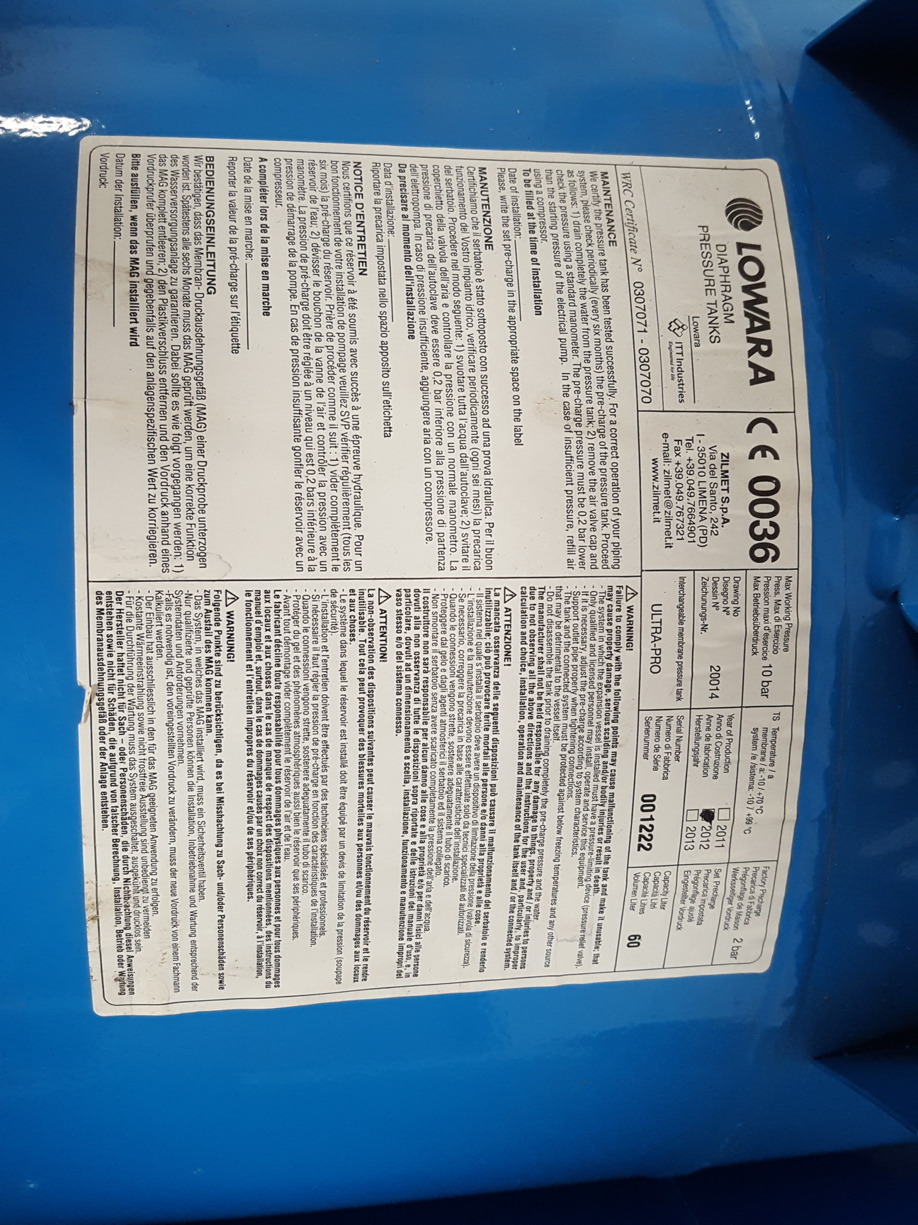 lowara diaphragm pressure tank