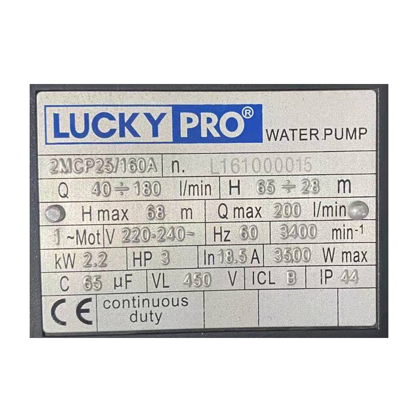 lucky pro water pump 3hp