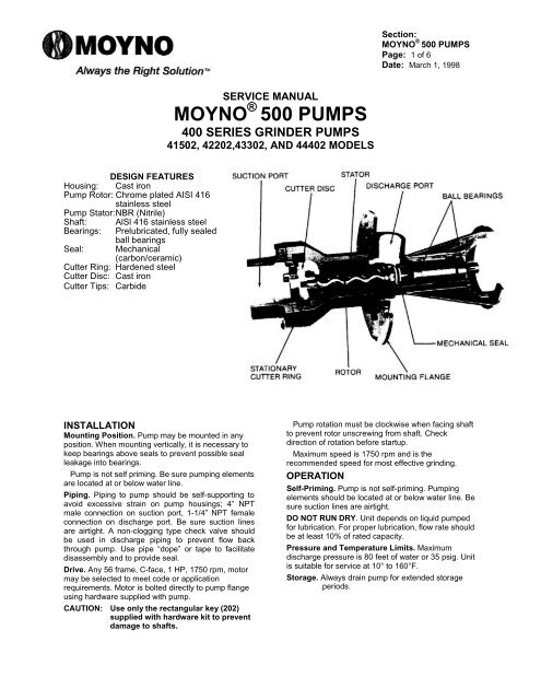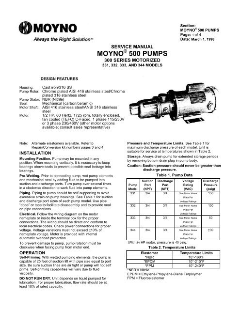 moyno pump model numbers