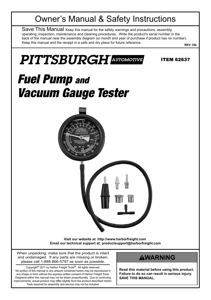 pittsburgh automotive fuel pump and vacuum tester