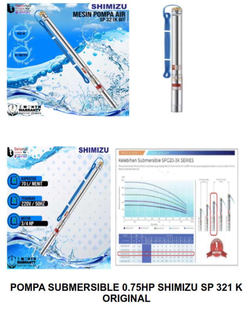 pompa submersible shimizu 0.75 hp