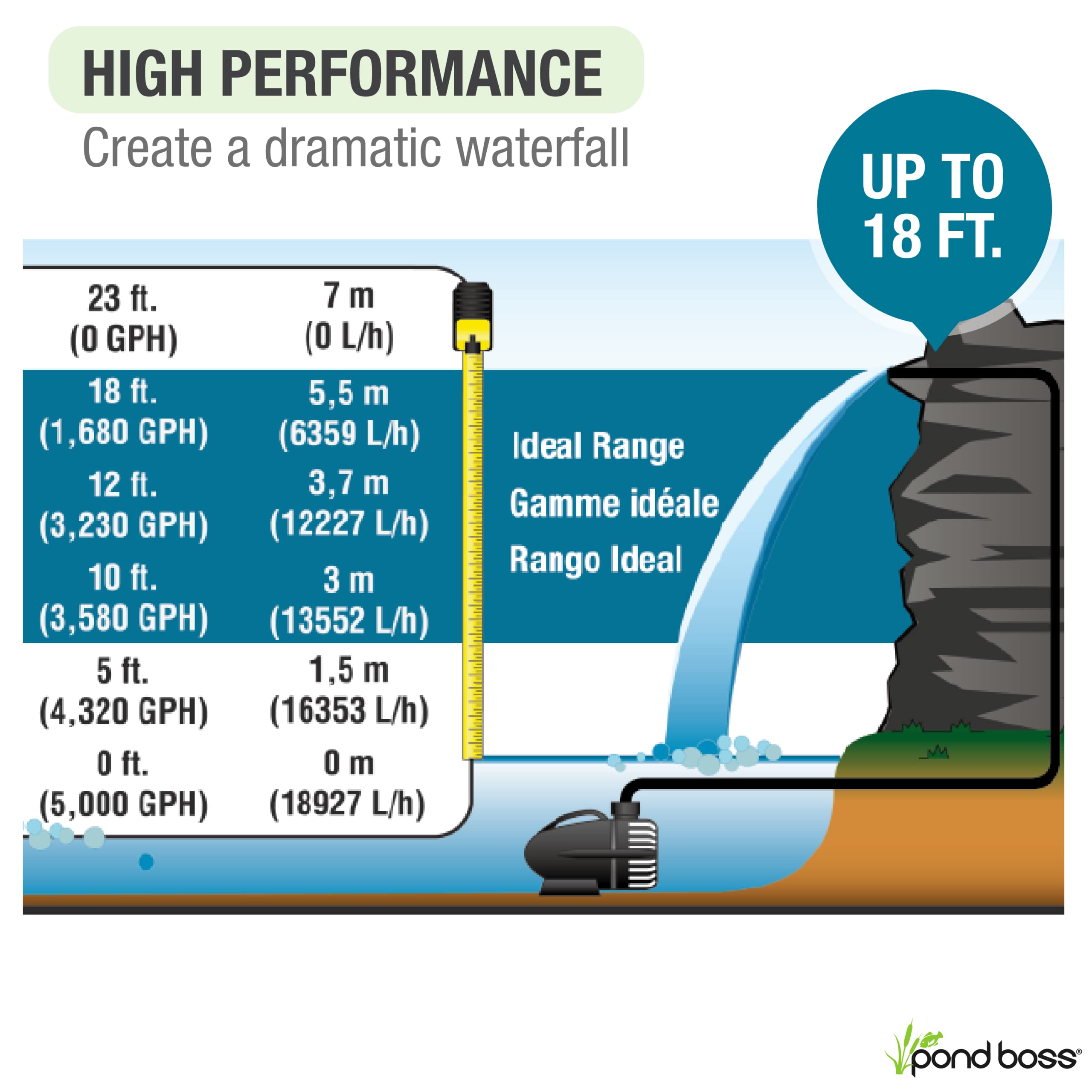 pond boss pw5000 waterfall pump 5000 gph