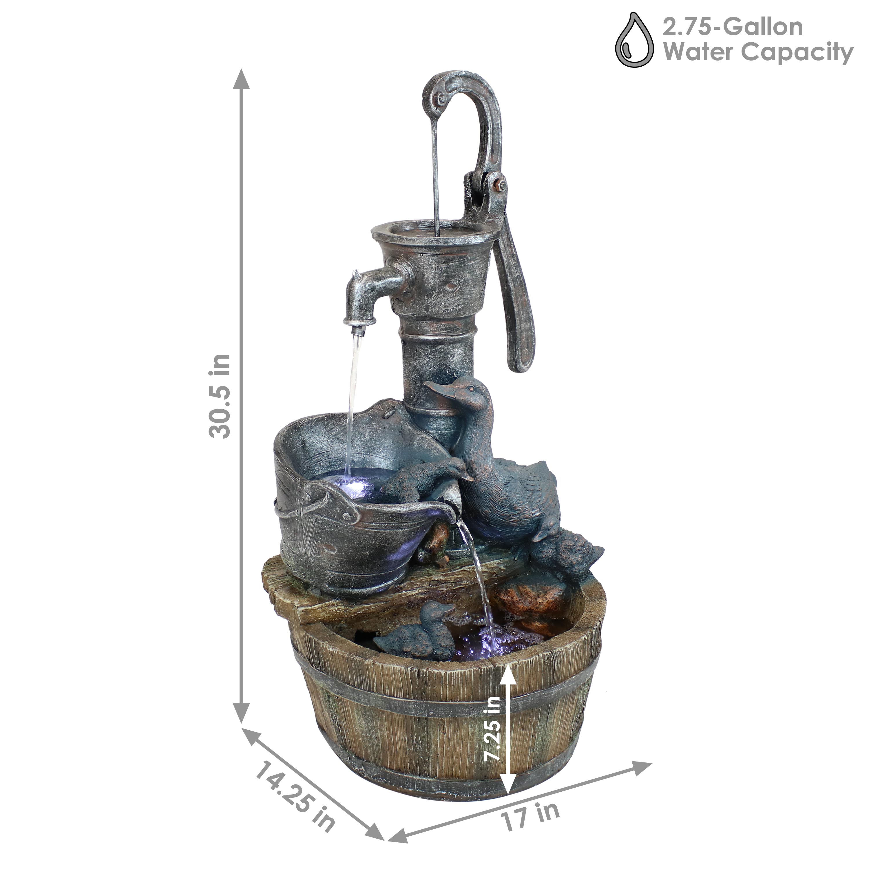 pump and barrel water feature with led lights
