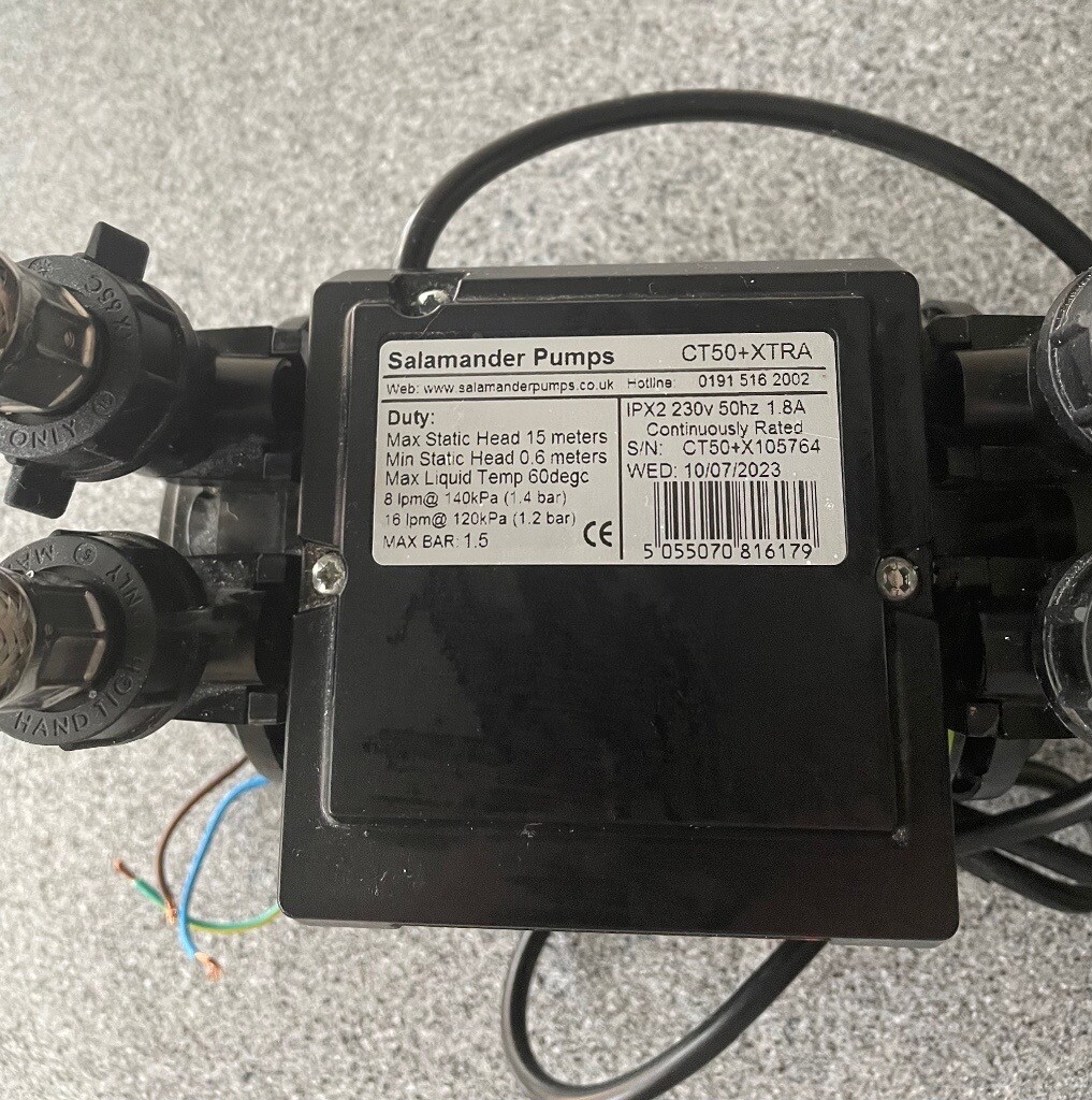 salamander ct50 xtra regenerative twin shower pump 1.5 bar