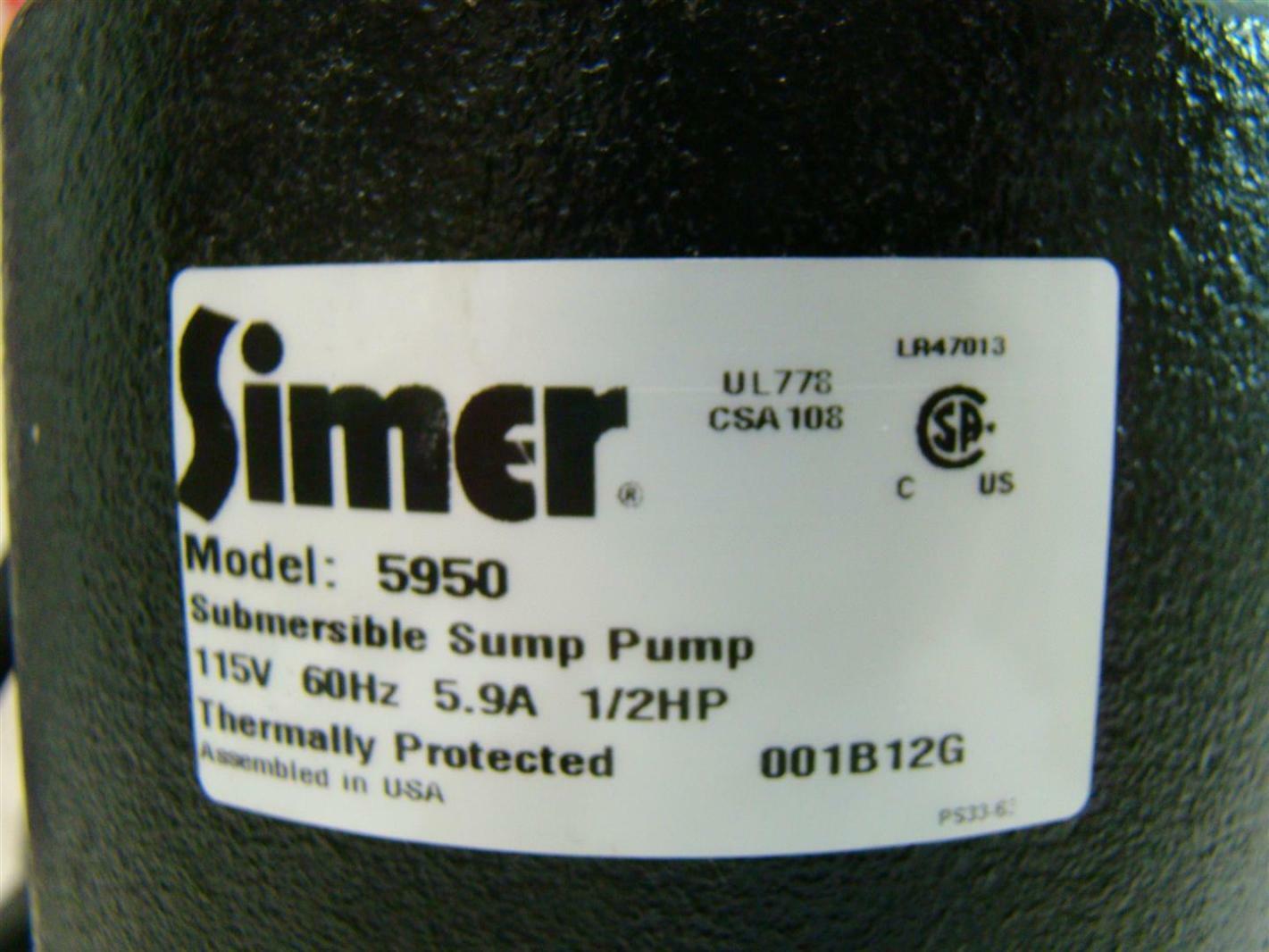 simer submersible sump pump