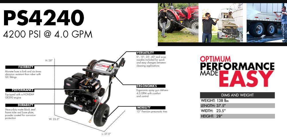 simpson powershot 4200 psi at 4.0 gpm honda gx390