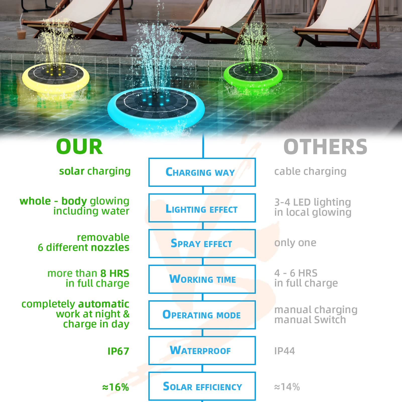 solar powered fountain pump with led lights