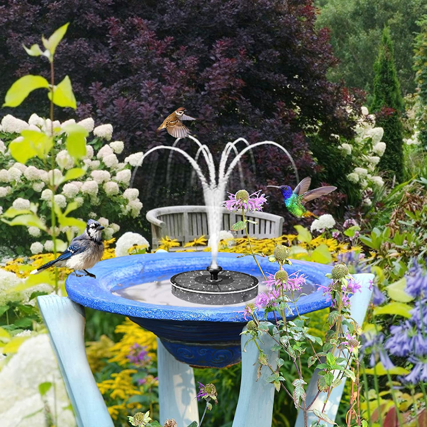 solar powered portable fountain for bird bath