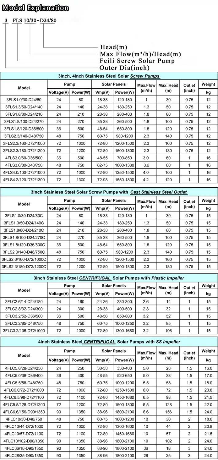 solar water pump price list