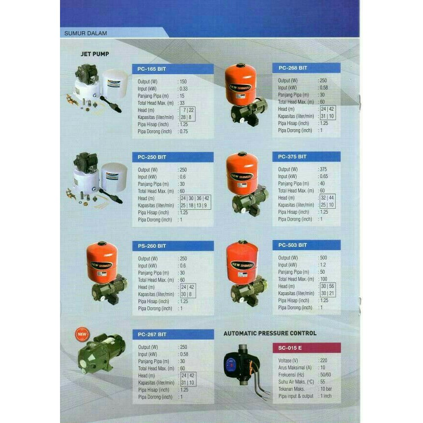 spesifikasi jet pump shimizu pc 268 bit