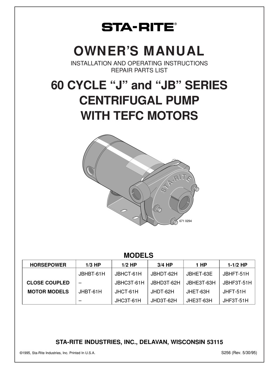 sta rite j series pump