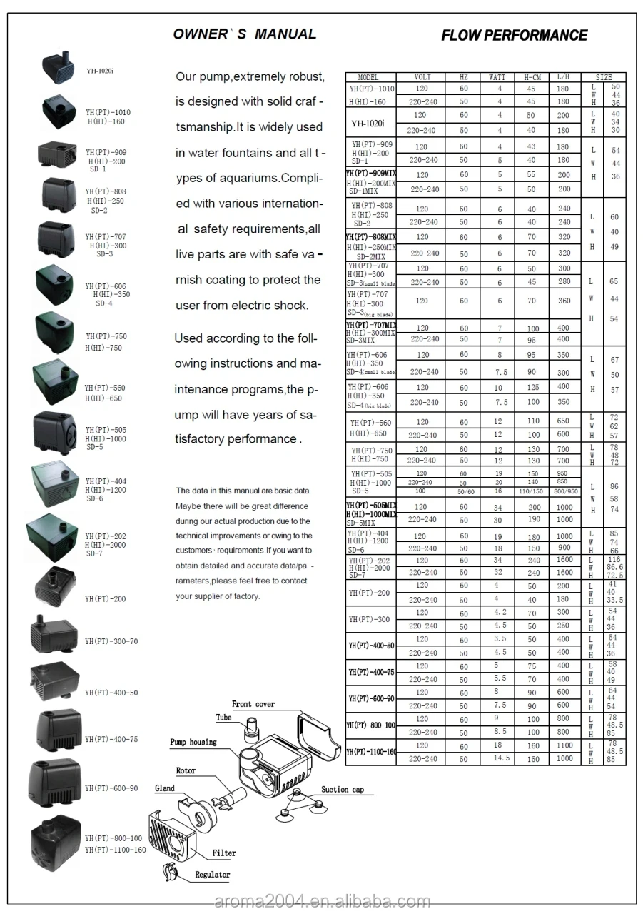 submersible fountain pump pt 707