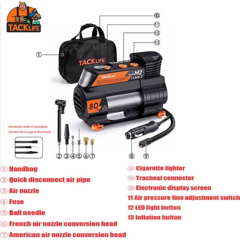 tacklife m2 12v dc digital auto tire inflator