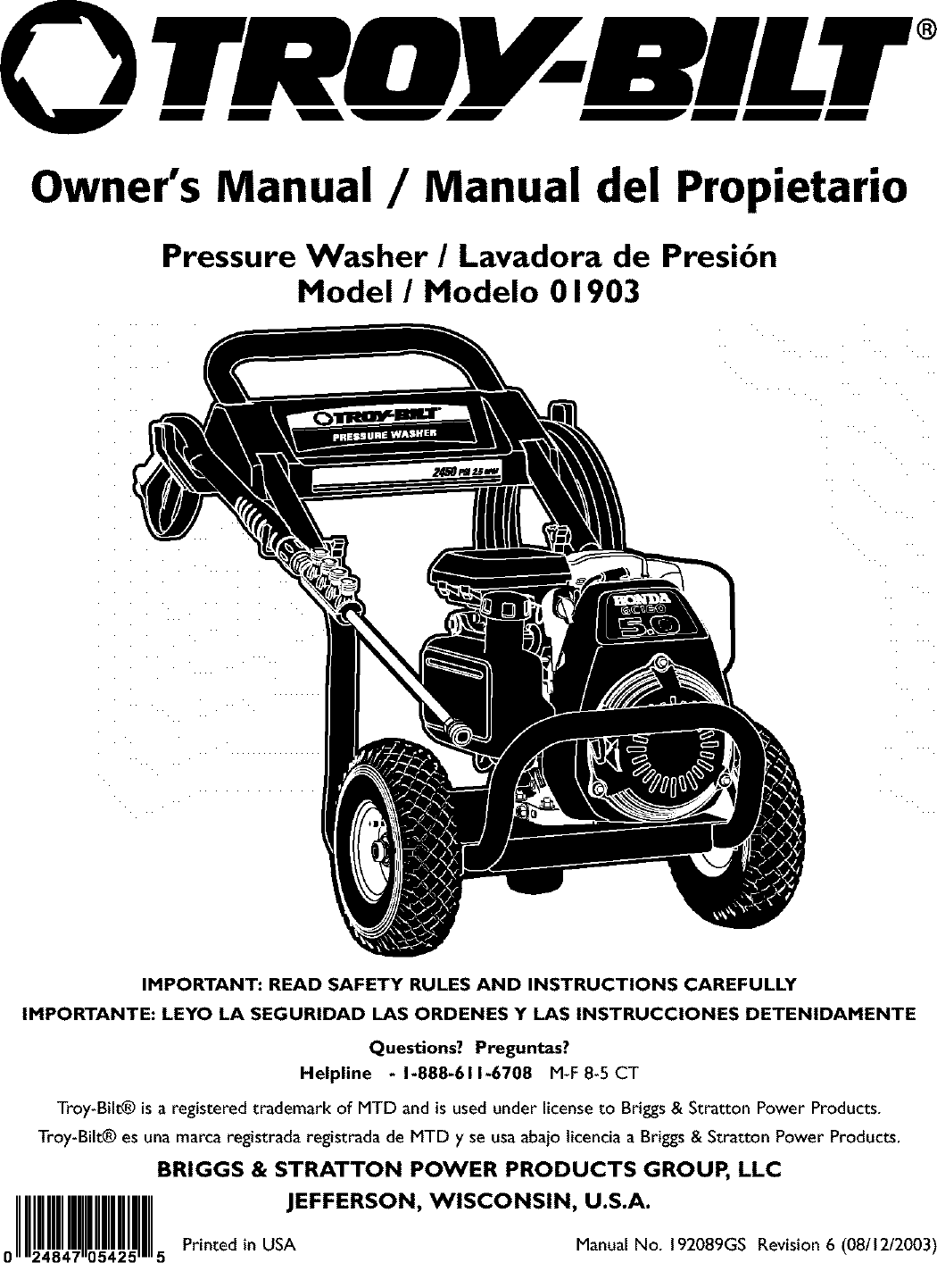 troy bilt 01903 pressure washer