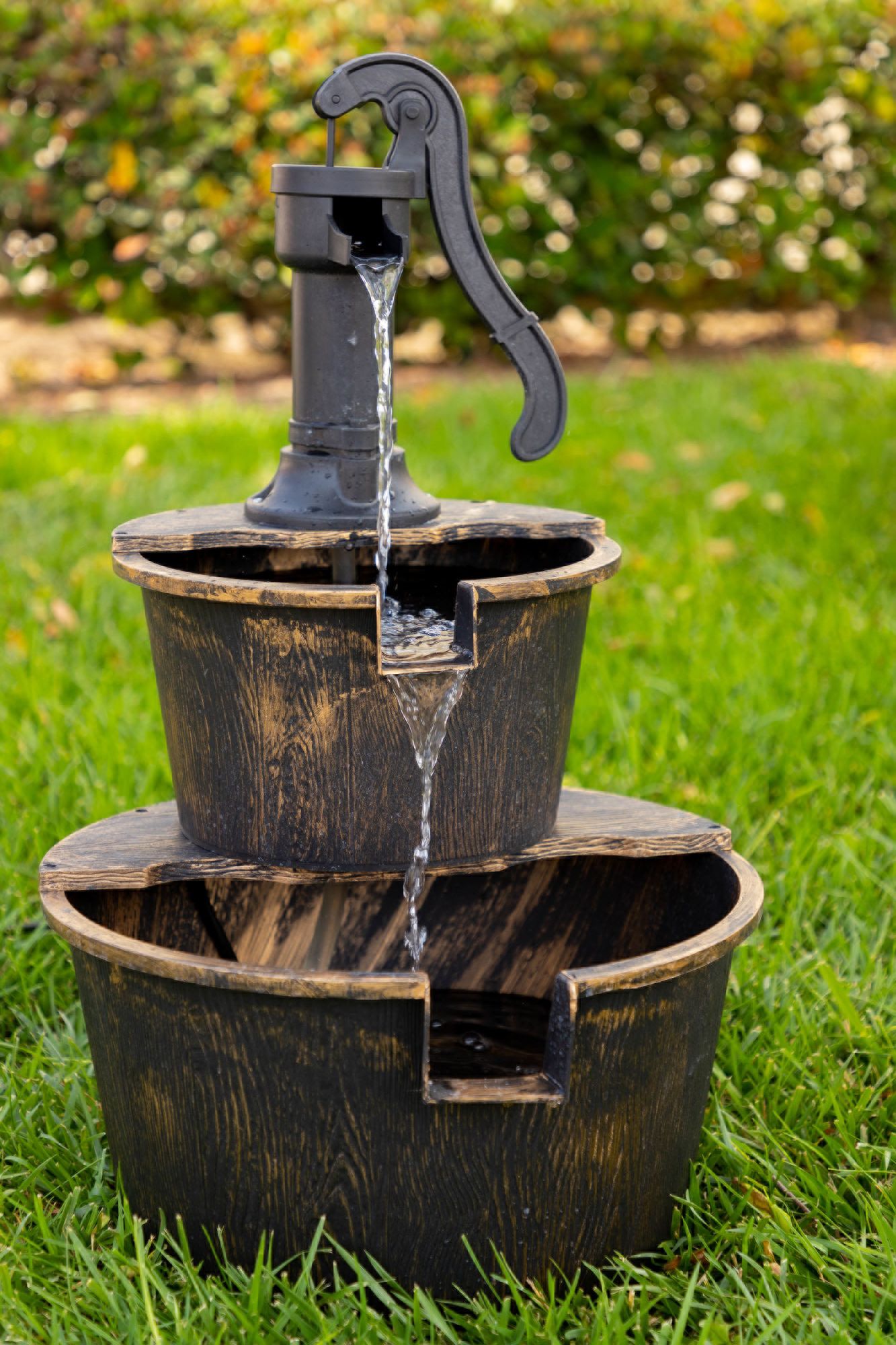 two tier barrel water feature